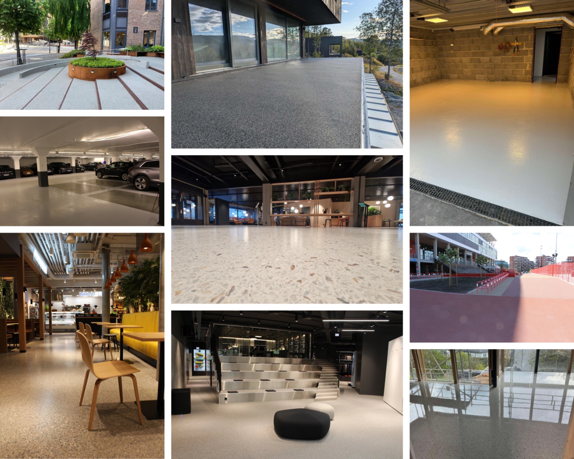 Vi leverer alt fra praktiske industrigulv til stilrene gulv for utstilling, butikker og private hjem.